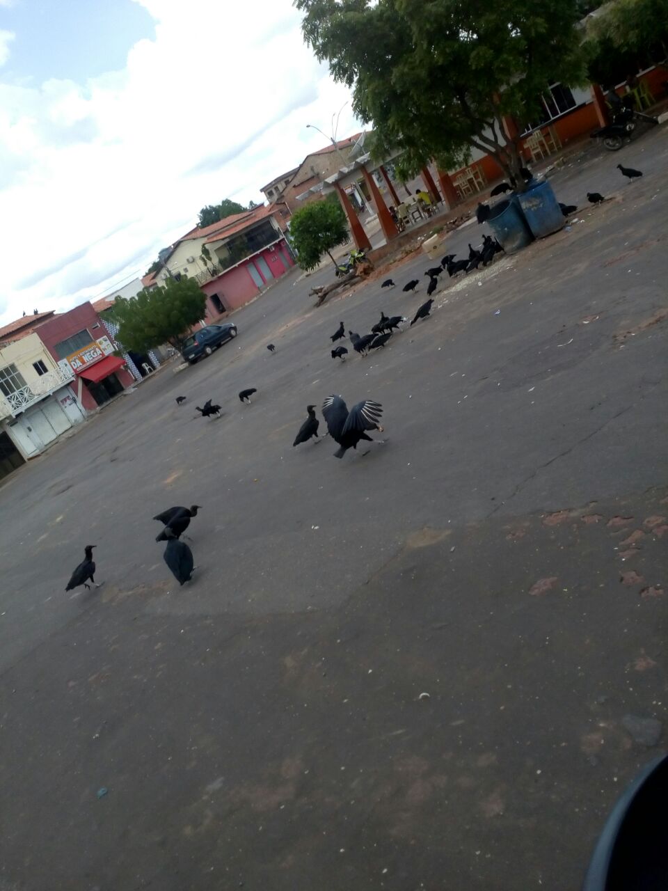As fotos enviadas por um leitor do Galo e que mora em Lago da Pedra mostra os urubus fazendo a feste em frente a Rodoviária, que fica localizada no centro da cidade, se o centro está assim, imagine os bairros da periferia.
