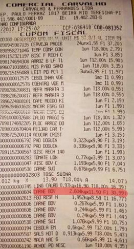 De acordo com a nota fiscal, o cliente pagou R$ 30,99 pela carne estragada. Ele acrescenta não quis trocar a mercadoria por nenhum item do frigorífico do Carvalho. "Eu não queria mais carne. Podia acontecer de novo. Naquele dia foi na minha, depois pode ser na de qualquer pessoa", afirmou.