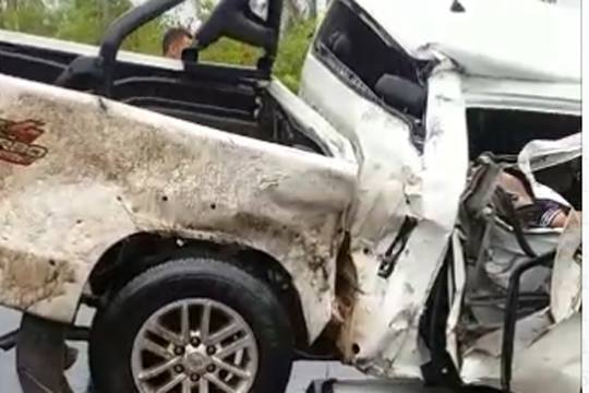 De acordo com as informações, o casal seguia na caminhonete em alta velocidade quando Márcio, que conduzia o veículo, tentou fazer uma ultrapassagem na altura da curva da uma [empresa que coloca asfalto na BR] e acabou colidindo violentamente contra o caminhão.