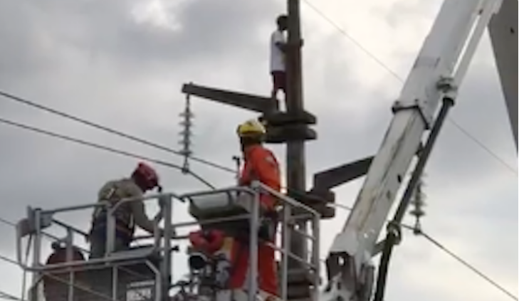 Segundo informações de populares, Ele subiu no poste e disse que ia cometer suicídio e ameaçava se jogar