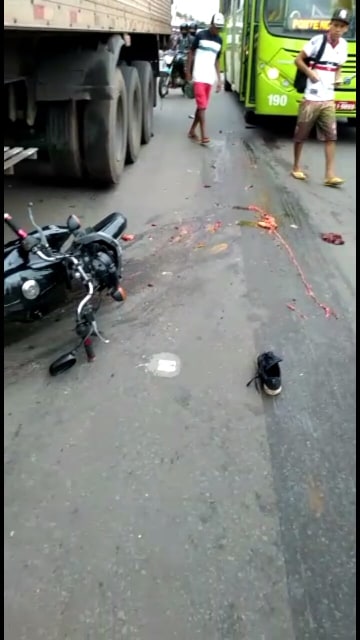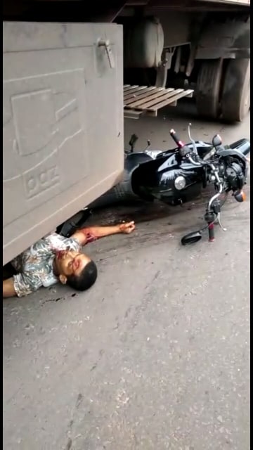 Imagens fortíssimas:Homem morre ao ter parte do corpo esmagado por uma carreta na Av. Francisco Carlos Jansen em Timon