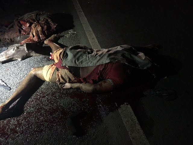 Imagens fortes, auxiliar de segurança evita bater em um Jumento morto na Br e é arrastado por uma carreta em Bacabal, ele morreu no local