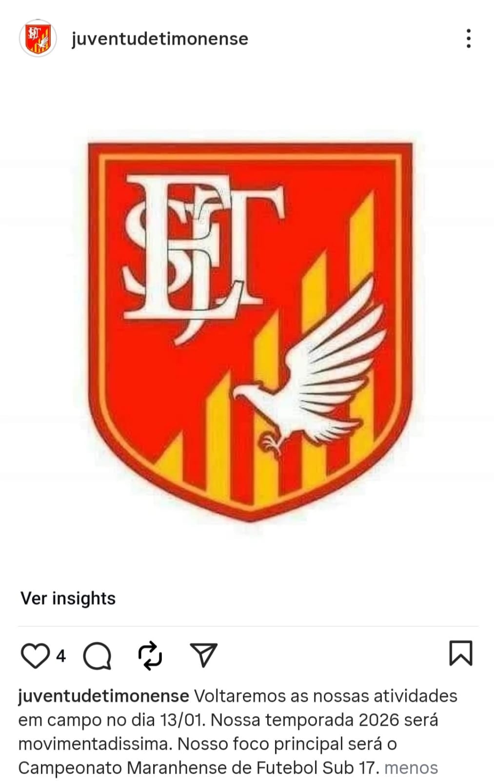 De recesso desde o dia 20 de dezembro, o Juventude Timonense, definiu para o dia 13/01, o inicio de sua temporada 2026. O anuncio foi feito neste domingo(04), nas redes sociais do clube.