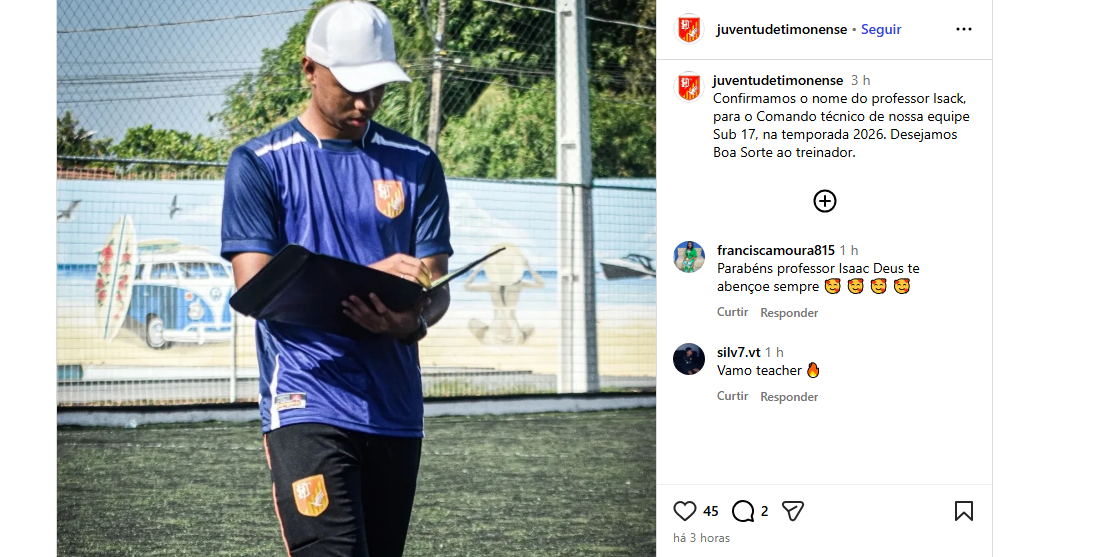 O Juventude Timonense confirmou no inicio da tarde desta terça-feira(17), a nomeação de Isack Símplicio como técnico da equipe Sub 17, na temporada 2026.