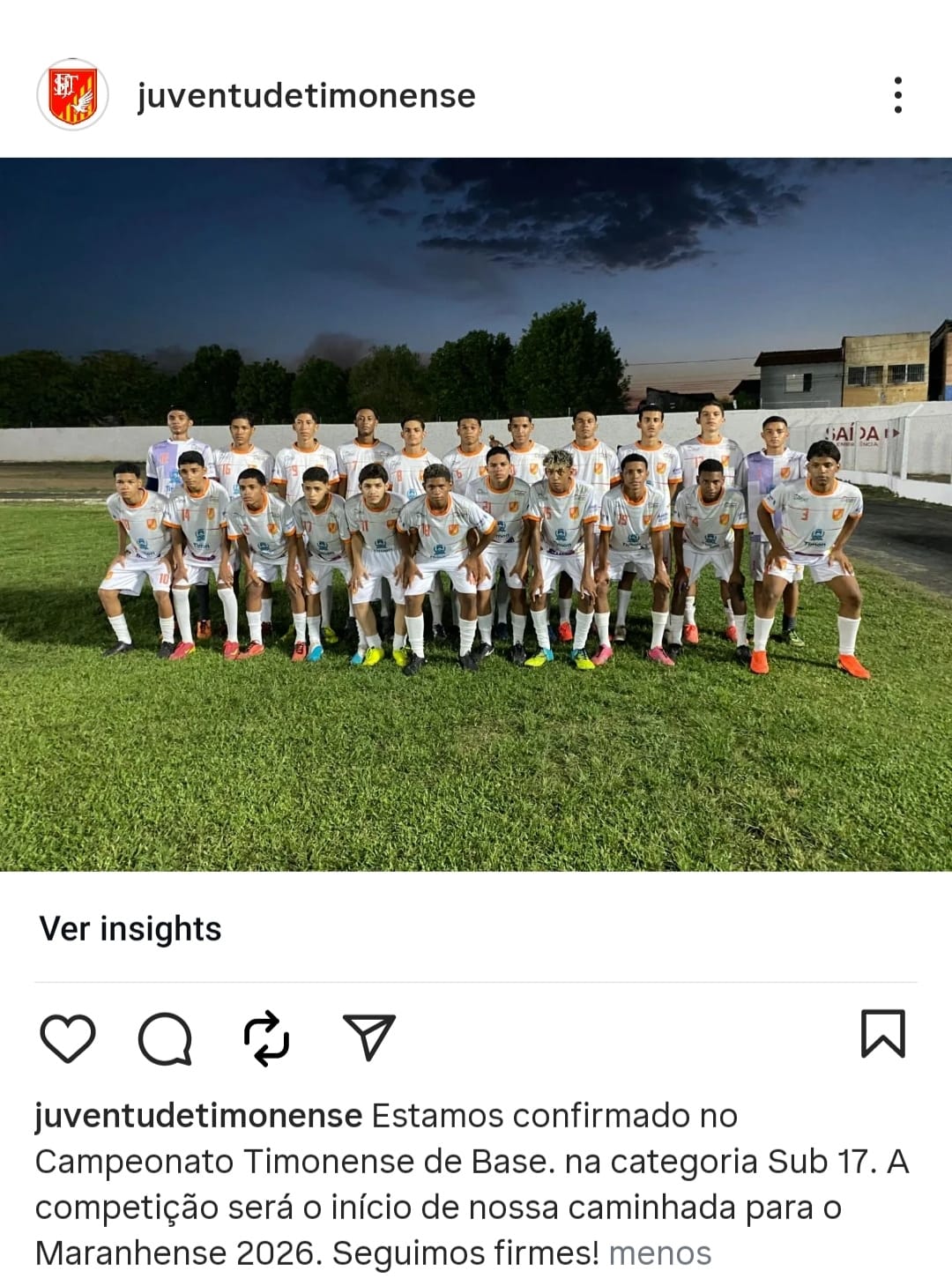 Segundo a diretoria do Juventude Timonense, o novo elenco do Sub 17 é formado por atletas que disputaram p Campeonato Maranhense deste ano e que em 2026 ainda estarão no ano base, atletas do sub 15 e alguns atletas novatos que residem em Timon.