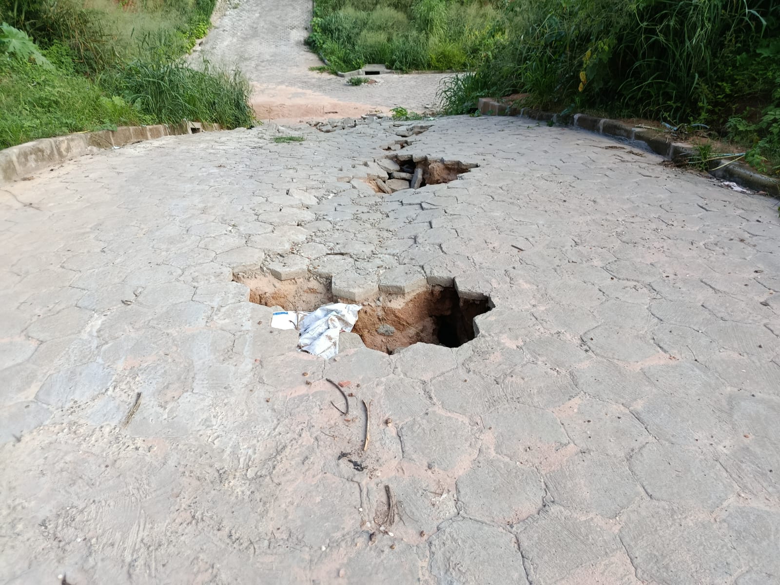 Mal feita e inacabada! Ruas do Canal da Esperança no Pedro Patrício começam a afundar e abrir enormes buracos; veja fotos
