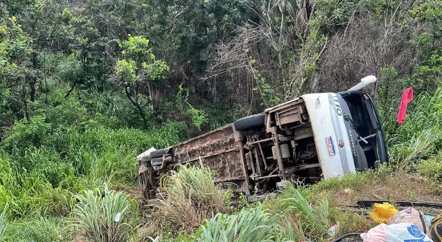 Uma mulher de 29 anos morreu após um ônibus tombar na BR-153, em Aliança do Tocantins. O acidente aconteceu na manhã deste sábado (14). Segundo a Polícia Rodoviária Federal (PRF), 45 pessoas estavam dentro do veículo, sendo que 16 ficaram feridas e uma morreu.