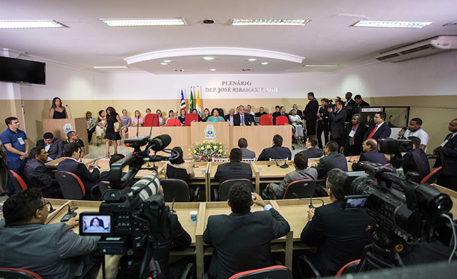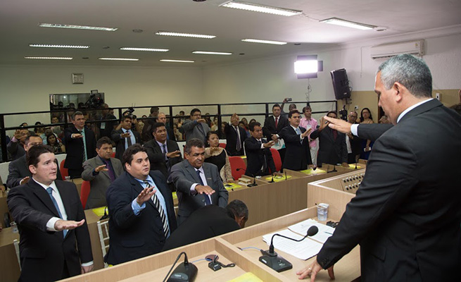 A vereadora Socorro Waquin(PMDB), presidiu a cerimônia por ser o mais velha entre os eleitos.