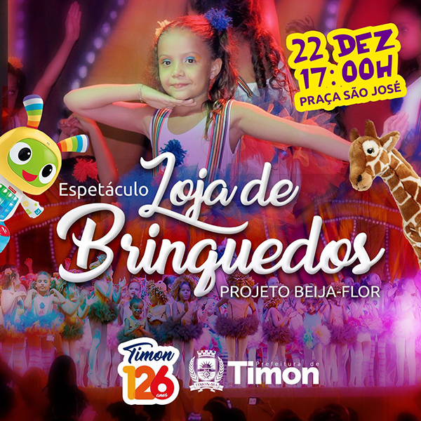 Neste mês de dezembro, a Prefeitura vestiu na cidade com decoração, luzes de natal e ainda reservou aos moradores uma apresentação do Ballet "Loja de Brinquedos", estrelado pelas crianças do Projeto Beija-flor. O espetáculo será neste 22 de dezembro, data do aniversário da cidade. Às 17h, as crianças subirão ao palco montado em frente à Prefeitura de Timon e através do espetáculo irão comemorar com todos os timonenses os 126 anos de história da cidade.