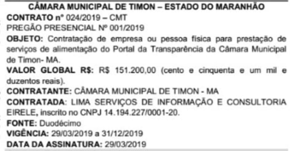Super salario: Responsável por alimentação do portal da transparência da Câmara Municipal de Timon vai receber mais de 16 mil por mês