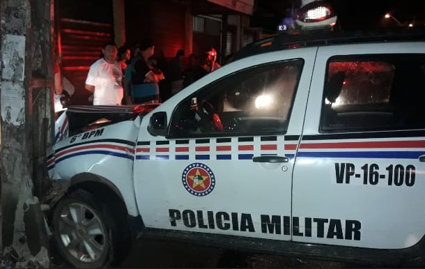 No início da noite deste sábado (23), uma viatura da Polícia Militar colidiu contra um poste durante uma perseguição no bairro Jardim América, na região da Cidade Operária, em São Luís.