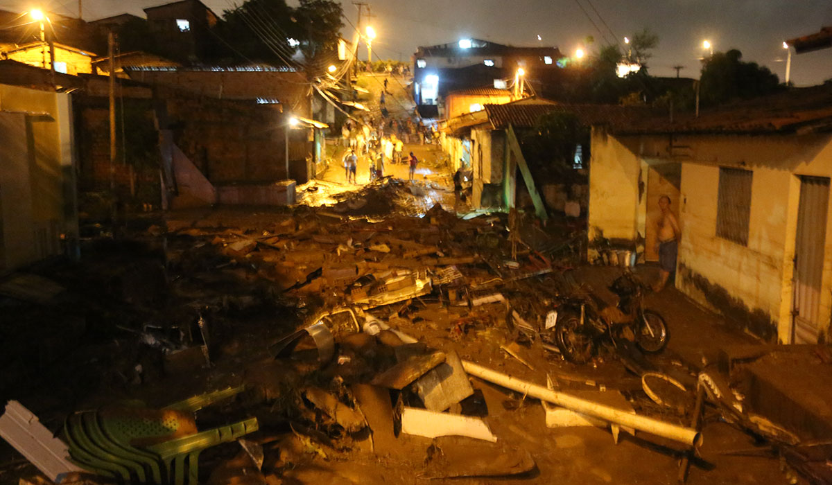 Uma lagoa transbordou e um bueiro rompeu na noite de quinta-feira (4) no Parque Rodoviário, zona Sul de Teresina, destruiu 30 casas, deixou duas pessoas morta e vários feridos